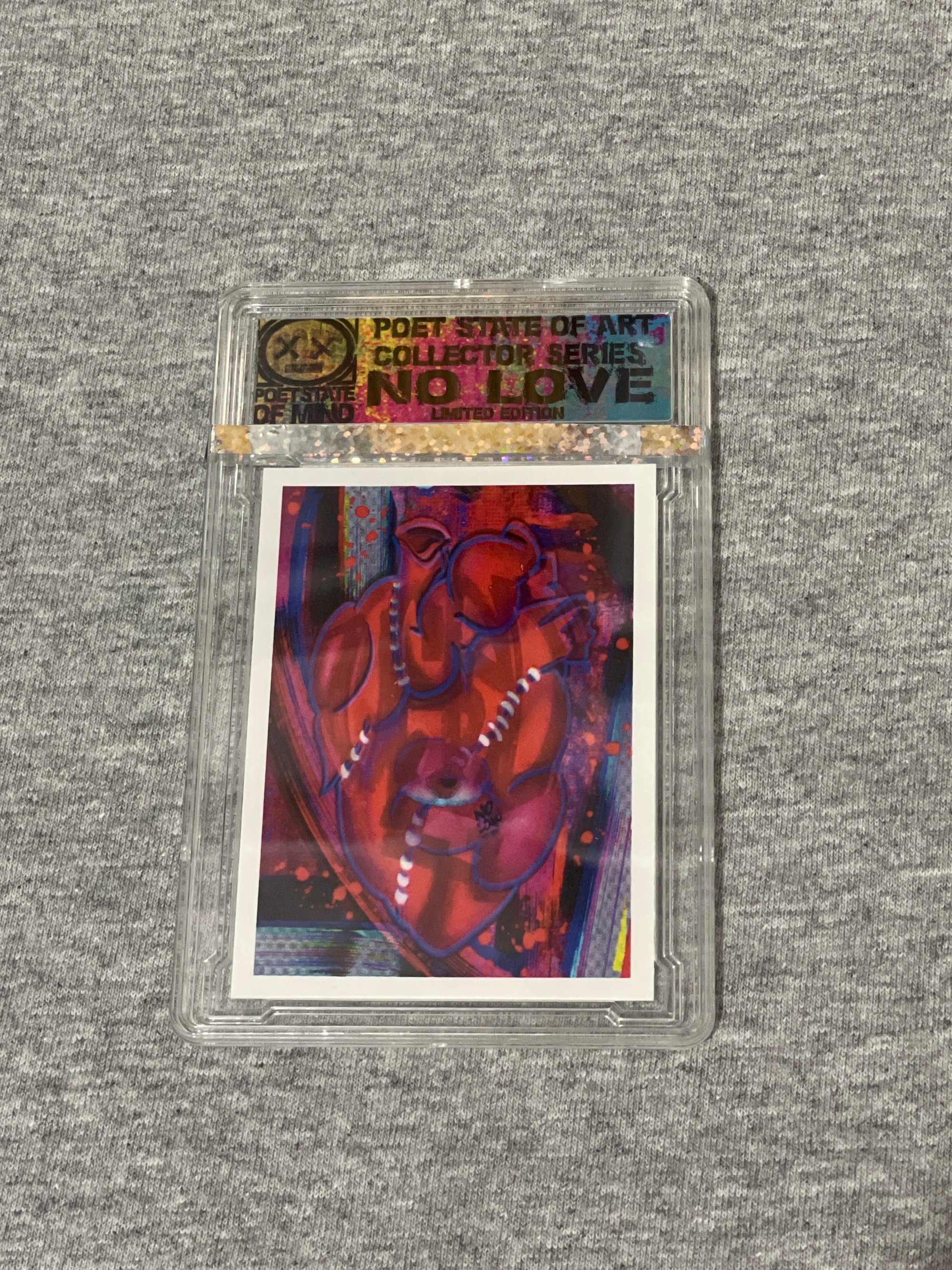 Introducing Poet State Of Art collector series. Limited edition original art, printed in a trading card style of Art card. All card are numbered, signed, enclosed and sealed in a trading card slab which measure 5.1x3.5x0.2 inches and made of high quality acrylic material.