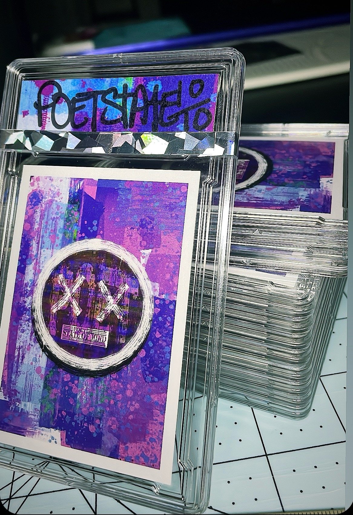 The 2nd installment to the Poet State Of Art collector series. Another Limited edition original art, printed in a trading card style of Art card. All card are numbered, signed, enclosed and sealed in a trading card slab which measure 5.1x3.5x0.2 inches and made of high quality acrylic material.